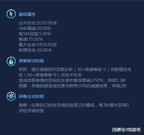 总属性:法术攻击+53; 最大生命+450;每秒回血+52 ;移速+4% ;冷却缩减+10%