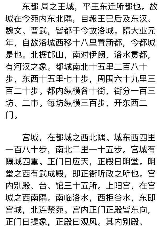 唐高宗以《建东都诏》昭告天下。历数建都洛阳的优越性。确认洛阳为唐朝法定都城。从此长安已降为陪都。直到唐玄宗后期回到关中为止。其间。武则天登基称帝后。为了打击唐朝遗老势力。又把长安的陪都地位降为普通城市。下面是作为二十四史之一的《旧唐书》对隋唐洛阳城的描述:“隋大业元年。自故洛城西移十八里置新都。今都城是也”。意思是:隋唐洛阳城是隋朝大业元年建成的新都城。在当今唐朝时期是唐朝的都城。