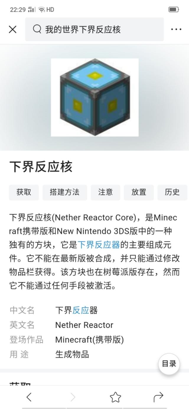下界反应盒在pe0.11版本以及之前的版本都还存在。从0.12地狱传送门加入以后。下界反应核就被移除替代了。而进入下界反应核后可以生成一个模拟下界的小房间。里面有一些地狱的生物。除了恶魂以外。