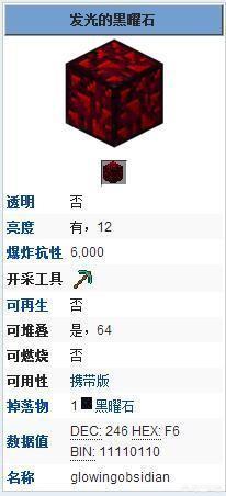 发光的黑曜石也是很早的版本在地狱里能找到的。但是不知道为什么。官方也是后来移除了。手机版上不知道这东西有没有存在过。但是大部分电脑版mc玩家还是知道这个东西的。