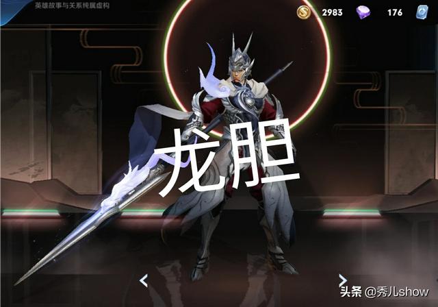 五虎将之一赵云的龙胆:银甲白袍符合赵云的经典形象。盔甲与装备贯彻流线型设计。龙与护心镜组成银龙吞珠。银龙也盘踞在亮银枪之上。