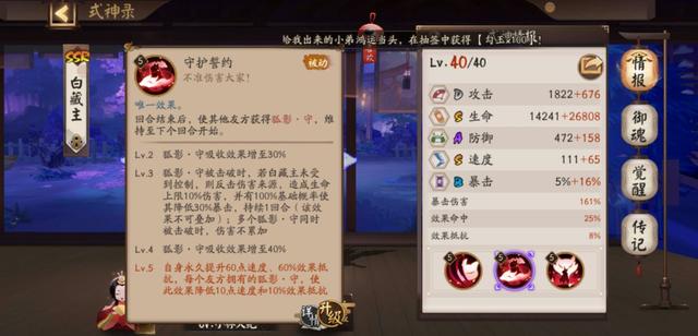 大家好!我是侦探说!一个资深的阴阳师玩家!首先我们来看看6星的白藏主的基本属性: