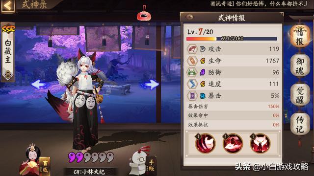 小白是一个辅助式神。一速很快抗伤很强一个式神。但是小白大多数也就存在于斗技。结界。PVP。