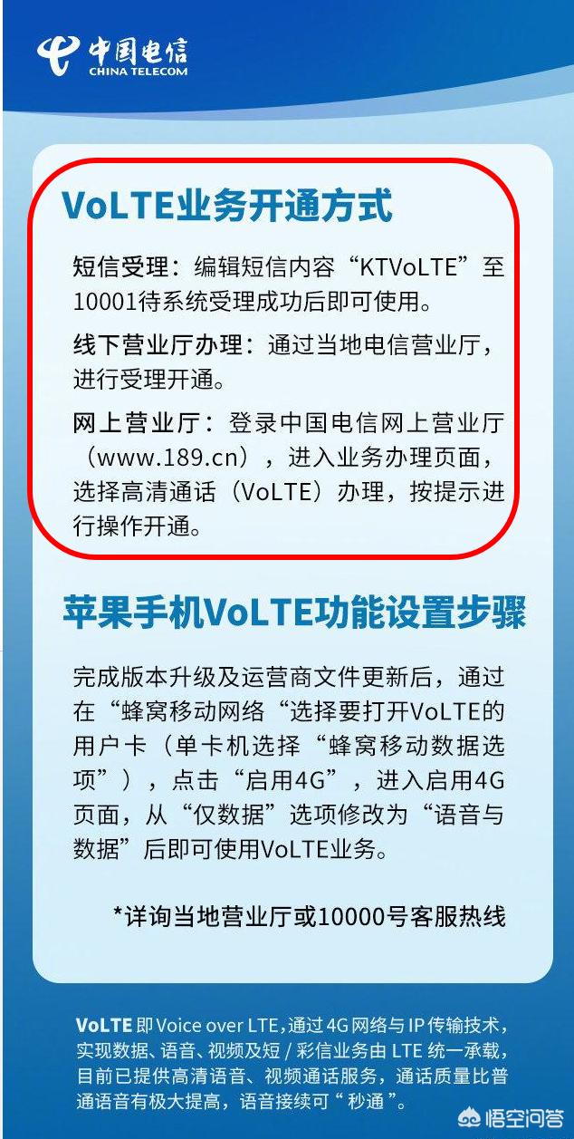 电信用户:电信在去年年底全国范围内开通了VoLTE。发送短信KTVoLTE到10001。就可以开通该业务。