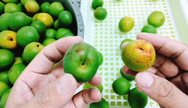 洗干净的青梅要把坏的果子挑出来。以免影响后期青梅酒的口感。