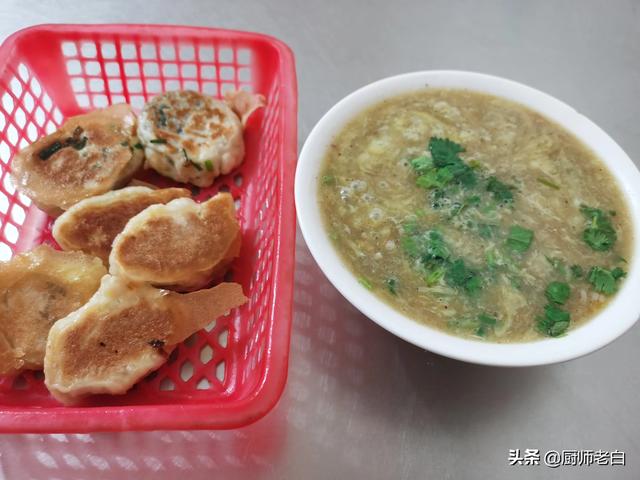 汤味道鲜香。有一点黑胡椒的微辣。搭配葱花香菜。让人欲罢不能!再配上两块钱的水煎包。这个早餐虽不算丰盛。但营养绝对跟得上!
