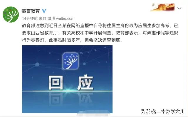该事件很快就在网络发酵。5月29日(今天)教育部回应了此事件。表示要求仝卓当年所参加高考的省份(山西省教育厅)和就读的高校、中学严格展开调查。并且表示将会追查到底!