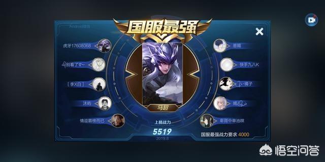 这是微信区的国服战力。刚刚3天的时间。马超的国服线已经来到了5519。(Q区应该更高)已经直逼老牌冷门英雄。