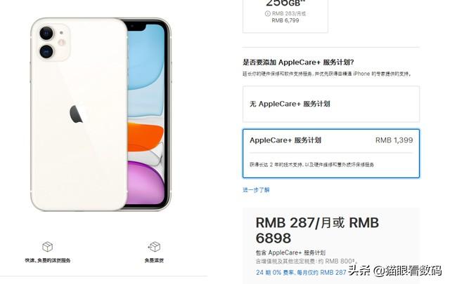 以今年比较热门的iPhone 11为例。这款手机的最初价格是5499元。假设你在iPhone 11上市的第一天就买了这款手机。并购买了1399元的Apple Care+。那么总价格就是6898元。