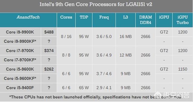 之前泄露的型号主要是酷睿i9-9900KF/i7-9700KF/i5-9600KF/i5-9400F/i3-9350KF/i3-8100F等。大家最关心的应该是酷睿i9-9900KF、酷睿i7-9700KF及酷睿i5-9600KF这三款高端处理器。没有核显之后频率可能会更高。可玩性更好。
