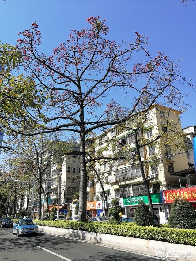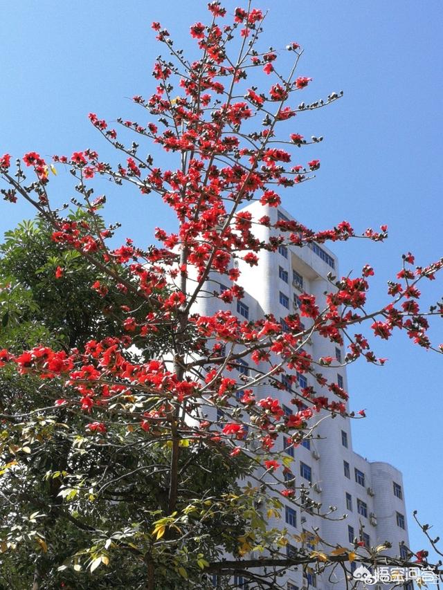 在南国这座以木棉为市花的城市。每到此时。大街小巷。公园山坡。随处可见红艳艳的木棉树。