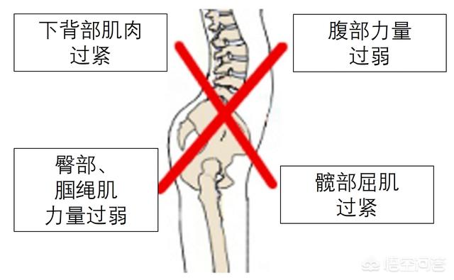 2、腰部浅层肌肉劳损后病态痉挛。牵拉腰骶部。也就是骨盆后中处的腰骶骨面附着着腰部深浅肌群。此次受力就会牵拉骨盆后边受到向上的拉力。就会造成骨盆前倾。