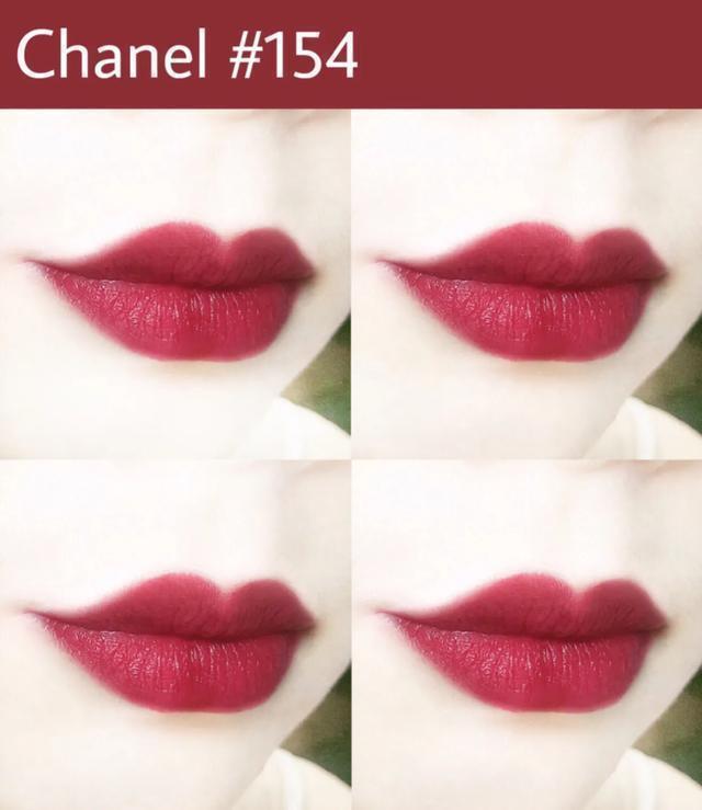 香奈儿#154夏日显白姨妈色。薄涂偏玫色厚涂酒红色。丝绒质地不拔干。磨砂感显高级。可少女可霸气。