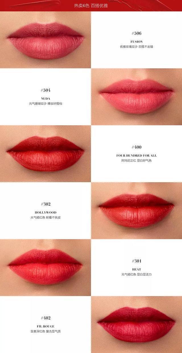阿玛尼「红管」唇釉属于阿玛尼臻致丝绒哑光系列。首支兼具丝绒质地和光泽感的唇釉。一抹唇部饱满水润、光泽立现。不粘稠的质地能保持唇部在涂抹后保湿度。阿玛尼「红管」唇釉会令唇色焕发光彩的同时。散发热情和诱人魅力