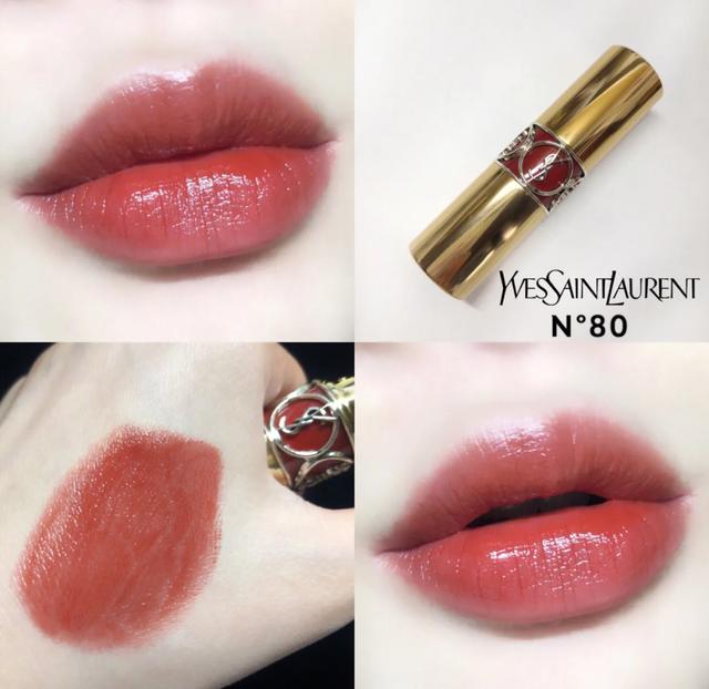 圣罗兰圆管#80橘调熟番茄。春季新色超级。很透很薄番茄枫糖色。滋润顺滑。素颜薄涂日常。带妆厚涂大美。显白又元气。