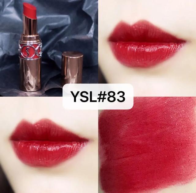 圣罗兰#83棕调浆果色带细闪。神秘特别。清透水红色巨显白。细闪无颗粒状。春夏小清新的浆果草莓色很可爱又不失气质。