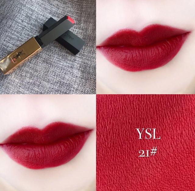 圣罗兰小金条#21简直美艳绝伦!复古正红色。哑光质地超高级。上唇气场全开。膏体设计很适合勾勒唇线。唇部干了用唇膏打底。绝对是口红界榜列前三。