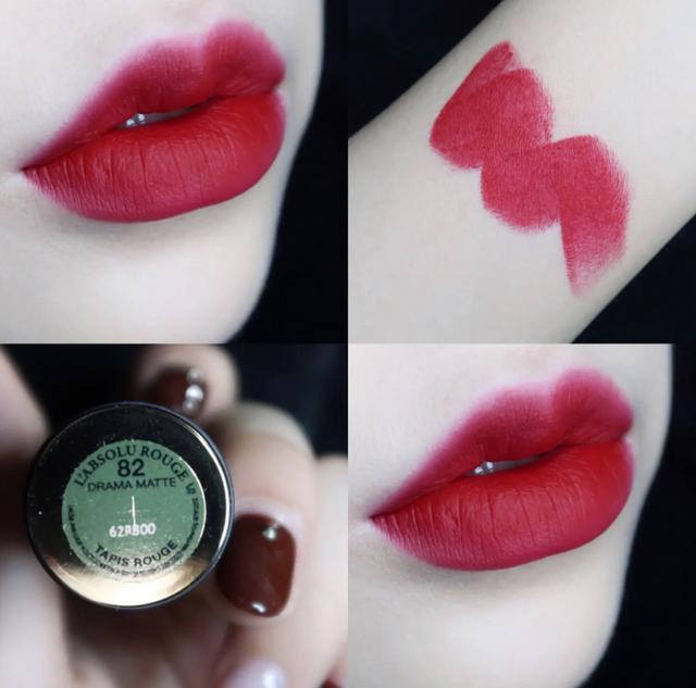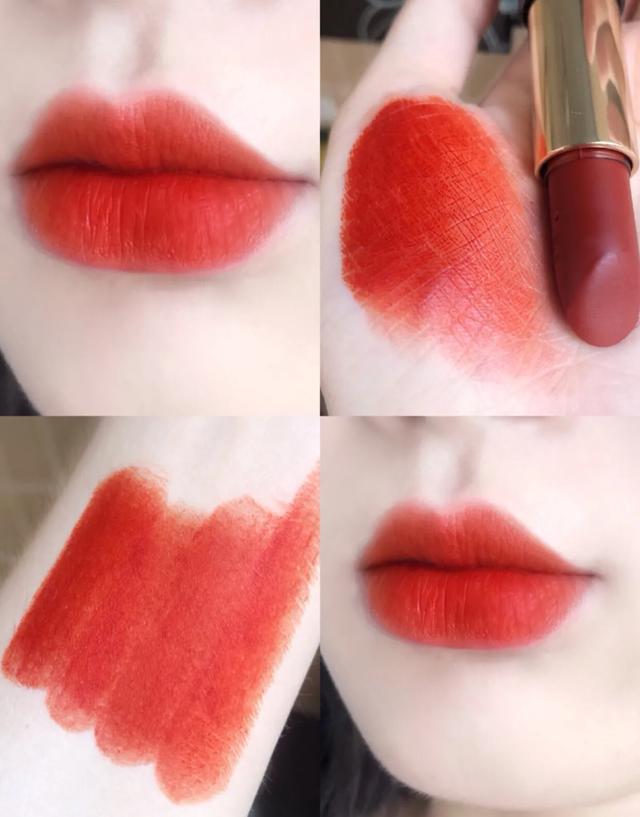 兰蔻#82巨美显白复古正红色。丝绒高级质感。雾面唇妆美艳柔顺。薄涂偏玫红。厚涂是复古酒红。白皮上唇尽显高贵气质。
