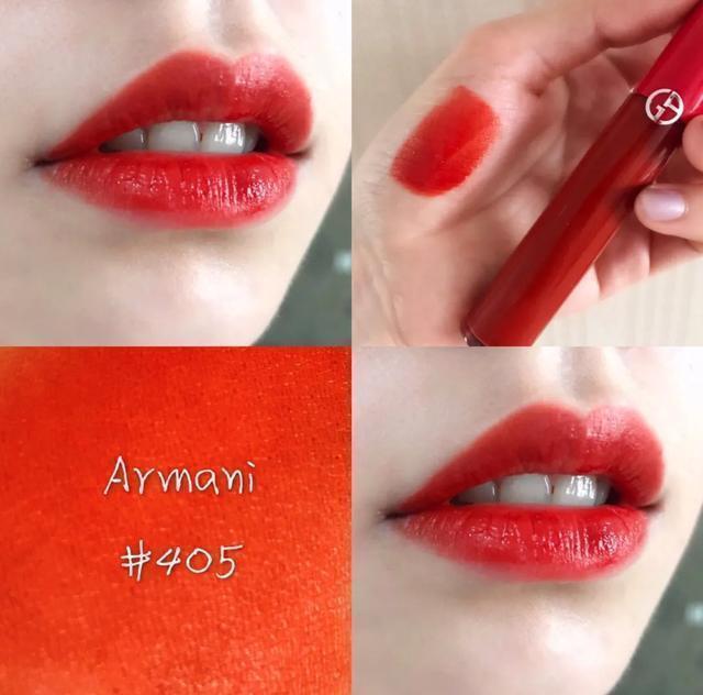 阿玛尼#405烂番茄鼻祖。巨美纯正烂番茄色。超级大火款。断货王!薄涂偏橘厚涂偏正红。不拔干不显唇纹。饱和又滋润。简直是为亚洲肤的量身定制。不挑肤。必入款。烂番茄口红色中扛把子!