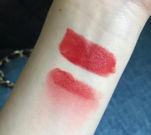 偏橙的红色 滋润 显色度都很高 感觉很显白 最好是带妆涂。壳子带镜子。出门补妆特别方便。也很高级