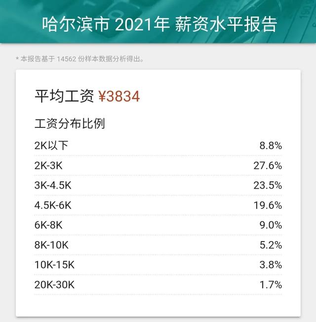 那么哈尔滨市公务员的工资待遇在当地怎么样呢。到底高不高呢?与哈尔滨平均工资做一个对比。如下图所示。在哈尔滨市2021年薪资水平报告中。哈尔滨市的平均工资大概在4000左右。