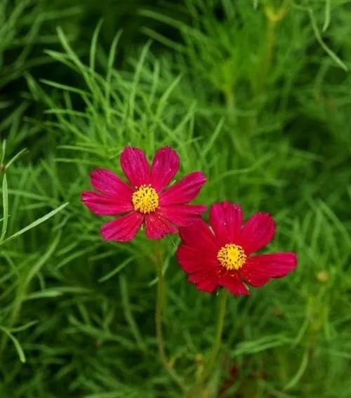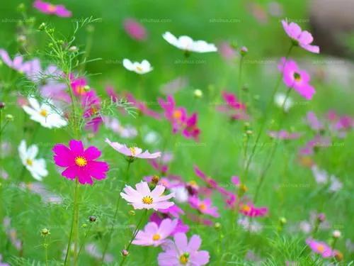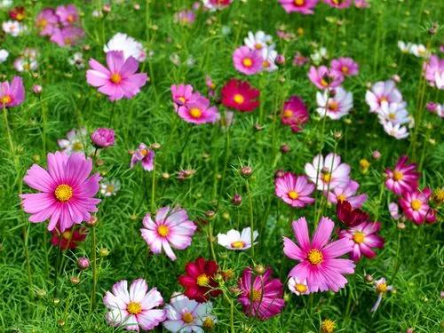 4。波斯菊;(格桑花)。一年生草本植物。花期6一8月。花色红、黄、粉、白、复色等多种颜色。也是比较好看的草本花卉。