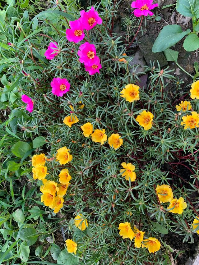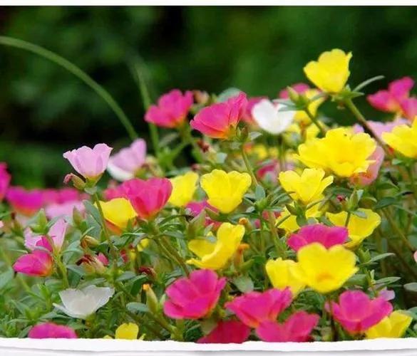 6。太阳花;马齿苋科。一年生栽培。种植20天即可开花。花期从种开到秋季。喜欢太阳。见阳光开花。阴天闭合。花朵红、黄、白、粉等多种颜色。
