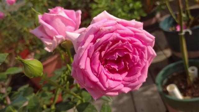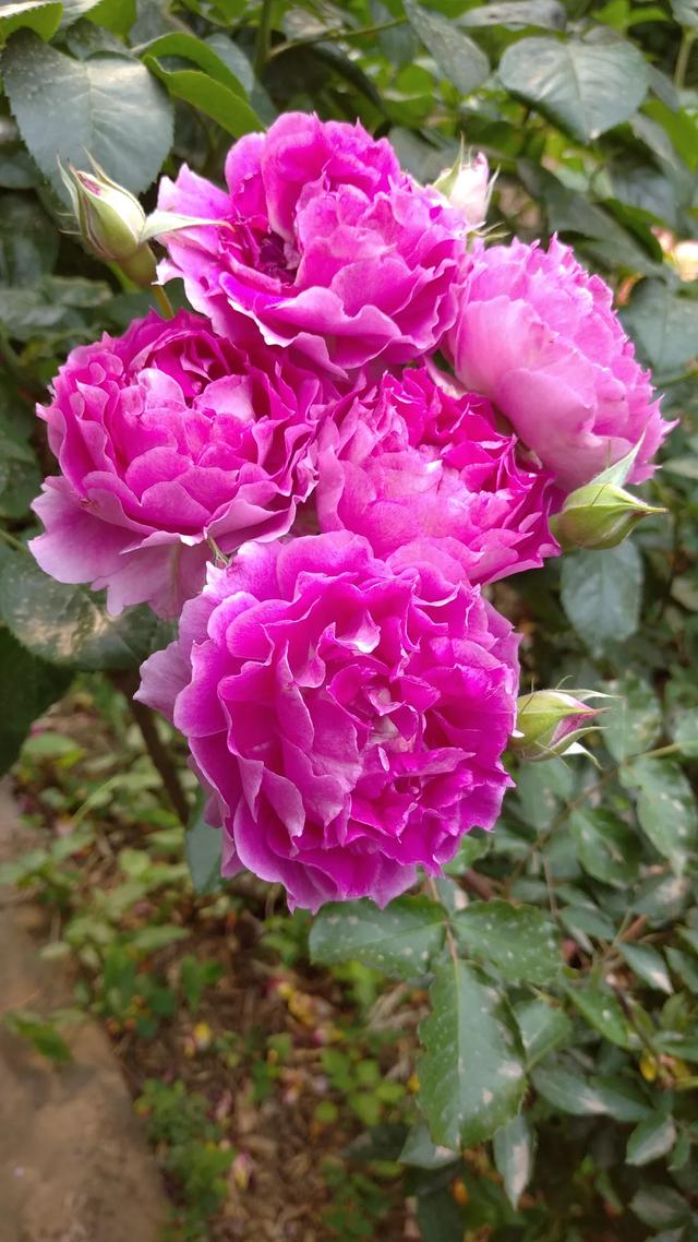 我种的香香月季排名:秋日胭脂。真宙。珍妮莫罗。还有一棵红色的初开像卡罗拉。后期像皇家胭脂。不知是什么品种。