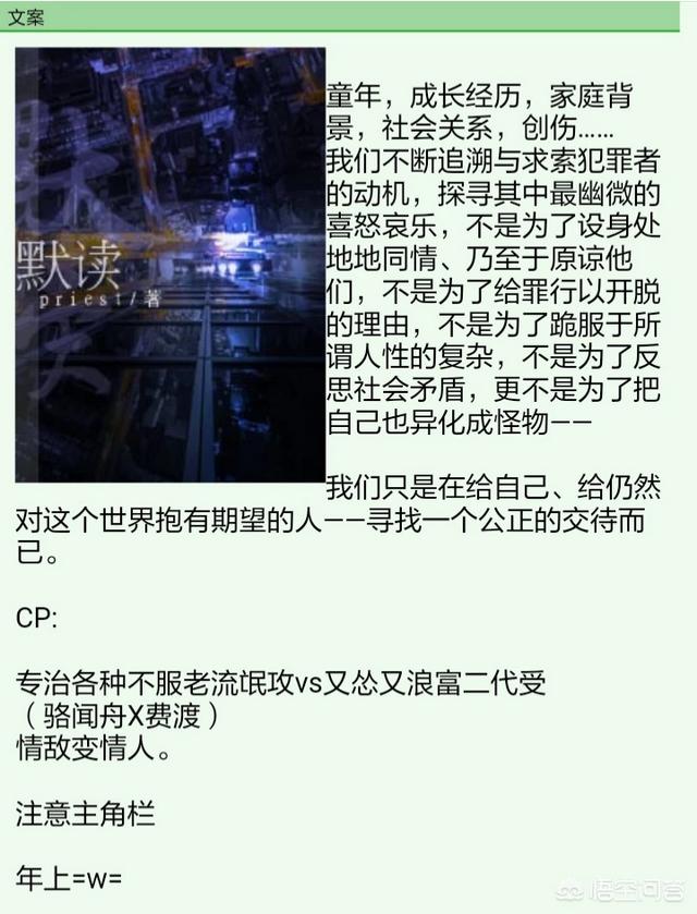 耽美叭墨香铜臭《魔道祖师》《人渣反派自救系统》木瓜黄《伪装学渣》priest《默读》这本蛮好看。可就是因为是破案题材的