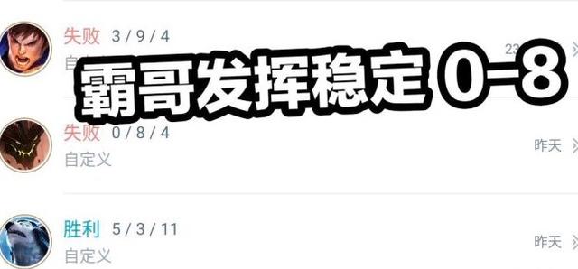 争霸赛一共进行了三场。霸哥三场的战绩分别为:5-3-11。0-8-4。3-9-4。除了第一局打的还算不错之外。剩下的两局全是被对面给爆了。而且第一局还是有猫腻的。对面君克在第一局也选了个狗熊。战绩是1-10-4。因为战绩过于夸张。和君克平时给人的印象出入太大。所以包括霸哥的粉丝在内。所有的人都觉得这个君克为了给霸哥点面子才故意整出来的。然后觉得差不多了。在第二局第三局用真正实力把霸哥虐了一遍。