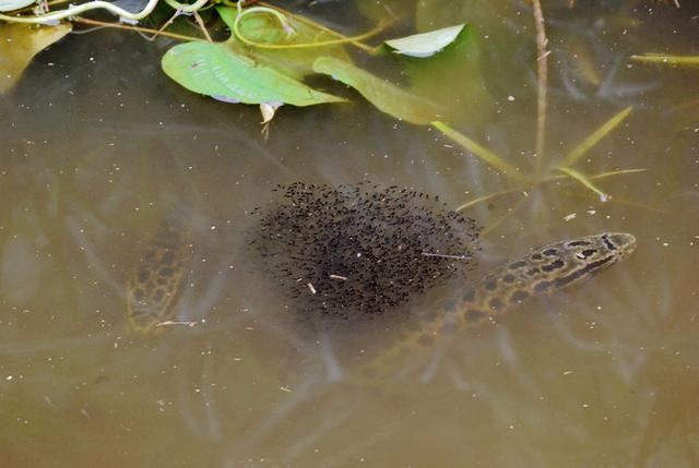 处于护子期的黑鱼。如果在够吃的情况下。建议放生多余的。因为失去父母的看护。小黑鱼会遭到其他肉食性鱼类和水鸟的攻击!