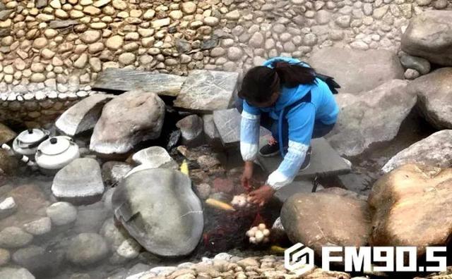 热水温泉水沸如开锅。一般水温91.5℃。最高温度98℃。足以煮熟几乎所有的食物。将鸡蛋、玉米、红薯、花生等放入温泉中。5到10分钟就能煮熟。拨开蛋壳。蛋清和蛋黄鲜嫩柔软。味道鲜美软滑。