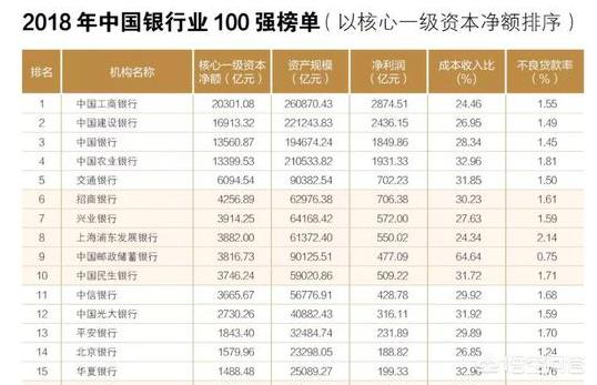 当然上述都不是银行主要的排名指标。银行的排名最主要还是看财务数据。截止2018年末。六大行里资产规模最大的为工行。建行屈居第二;净利润也是工行第一。建行屈居第二;从核心一级资本上来看。仍然是工行第一。建行第二;此外从营业收入上来看。还是工行第一。建行第二。这也是为什么工行被称之为宇宙第一大行的原因。