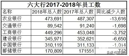 另外。排名第二的则是工商银行。达到了449296人。同比减少人数3752。中国银行员工总人数为310119。而建设银行以345971的人数位居国有四大行之第三。