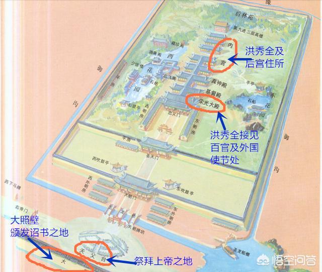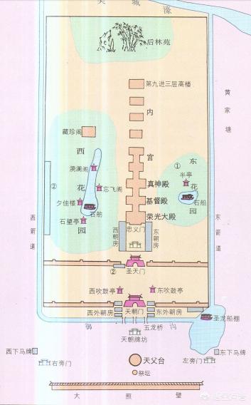一进城。洪秀全就住进了清廷两江总督署旧址。然后开始在自己的眼皮子底下大兴土木。建造他的九重宫殿和后林苑“御花园”。