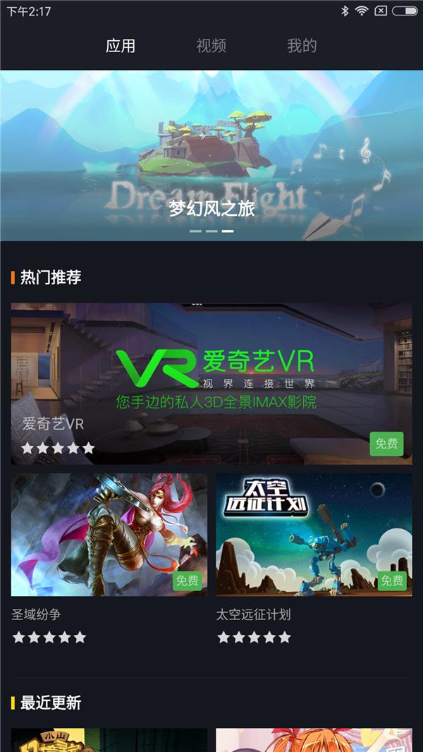 小米VR软件提供了不少视频和应用。据官方介绍。MIUI VR版中目前已经收录了全景视频500多个、VR应用30多个。其中视频资源包含了全景视频、电影影院、游戏等等。同时融合了优酷、爱奇艺等VR和影院平台。令人欣喜的是。现在所有的资源基本都是免费的。