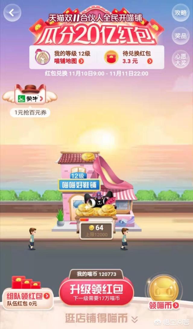 目前在进行的天猫双11合伙人全民开喵铺活动瓜分20亿活动应该是参与最多的。同时挑战难度也比较大。基本上为了拿红包。每天都得上线。为了分更多的红包。我觉得有以下几点需要注意