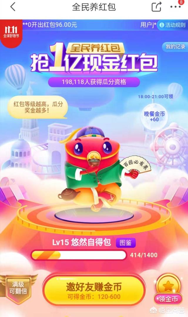 京东今年的全民养红包大概有1亿投入。难度比较小。也可以试试。很快就升级到18级满级了。