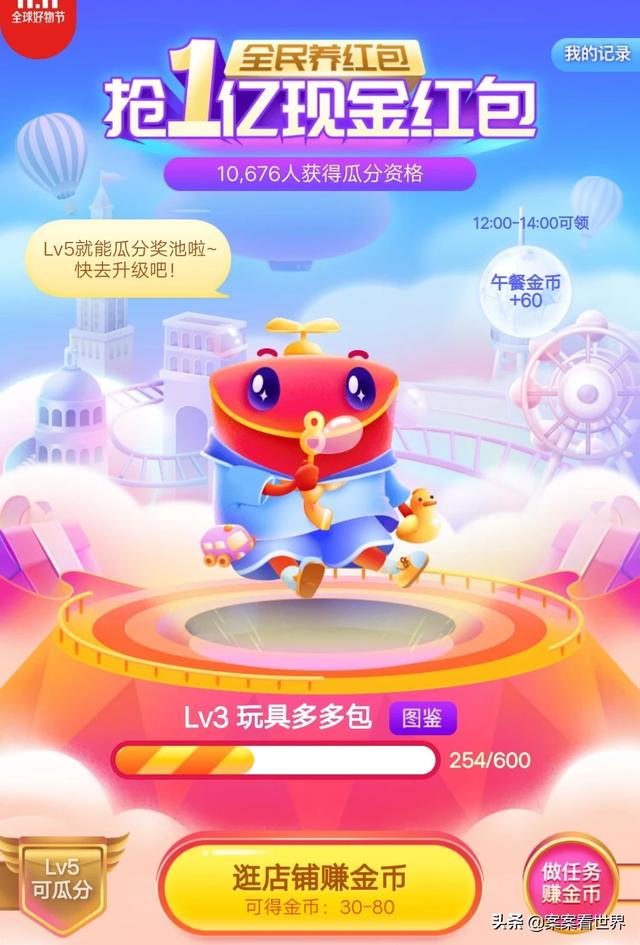 京东现在开启的是全民养红包活动。共同瓜分一亿元。