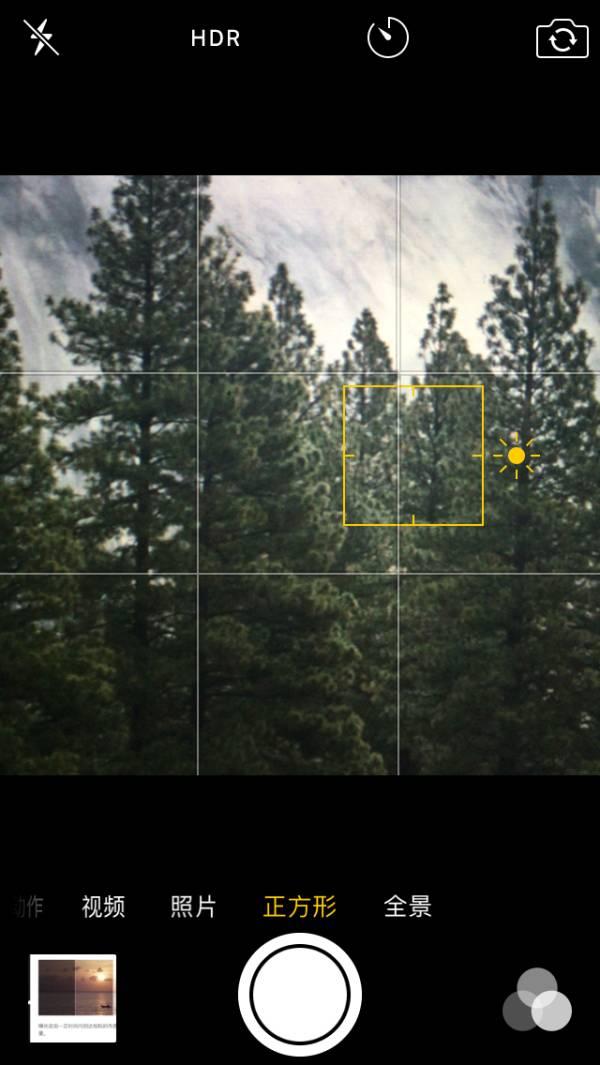以上三张照片。分别展示了不同的情况。分别是曝光不足。正确曝光。以及曝光过度。而对于手机曝光想要调整也十分粗暴:哪里不满意点哪里!例如。你觉得这里有些暗。你就点暗得部分。如果你觉得这里有些亮。你就点亮的部分。如果你觉得这样调节太粗狂。满足不了你细腻的小心思。你可以通过调节画面中对焦框旁的小太阳滑动改变明暗。如图: