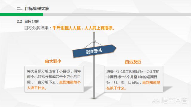 大目标分解成小目标。长周期目标分解为短周期目标。