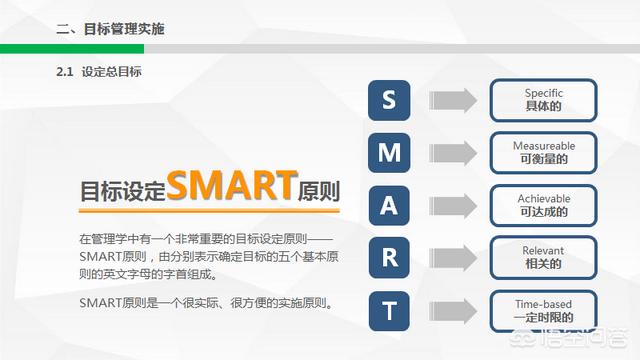 分享一个41页的PPT。不仅有SMART原则。还有如何通过PDCA、5W2H来落地和实施目标。