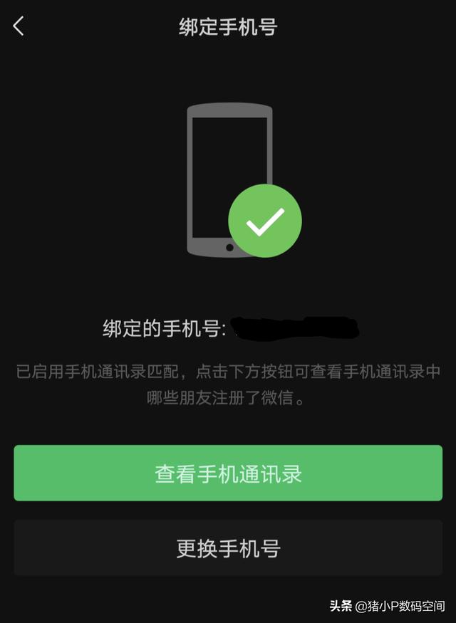 完成验证之后。会进入这样一个界面。原来的手机号将会停用。新手机号成功绑定微信。
