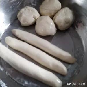 2、面饧好后。揪成鸭蛋大小的剂子。刷上一遍油。挨个搓成小棍棍。