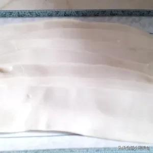 3、把面棍擀成薄片。刷油。再饧一会。