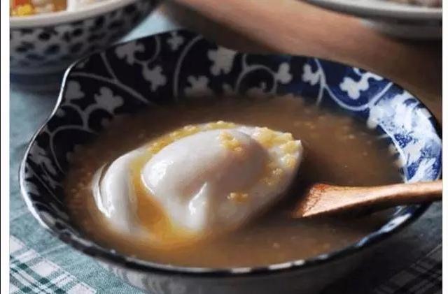 3.小米煮好后。盛入碗中。加入鸡蛋和红糖即可上桌食用