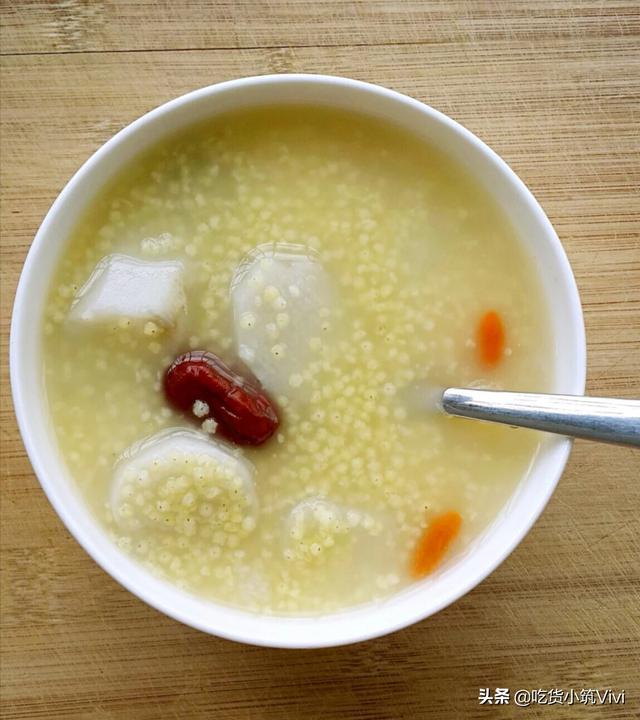铁棍山药:一根。小米:一量杯。红枣:几颗。枸杞:一小把。