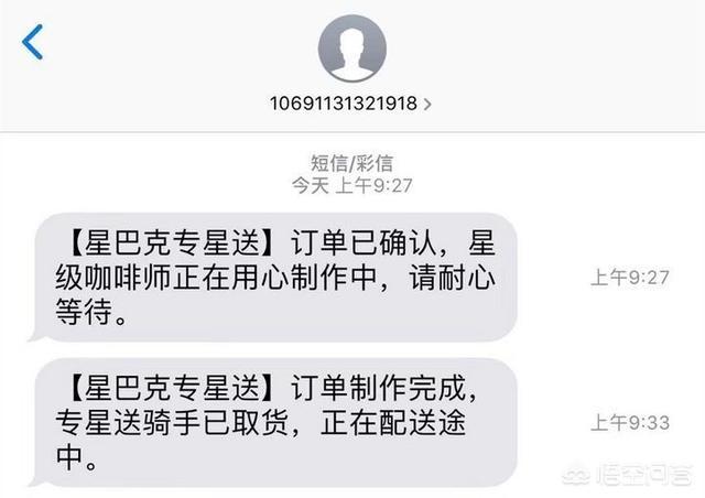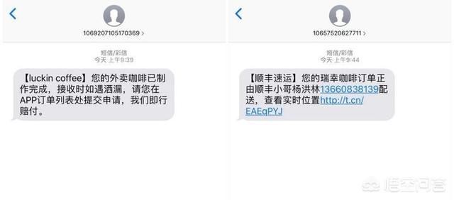 在送达之前。两家都会通过短信告知目前的进度:在 9 点 33 分的时候。星巴克就表示咖啡制作完成。骑手已经取货。这个速度大概是刚好碰上外卖骑手在店里玩手机吧?在 9 点 39 分的时候。瑞幸也短信通知咖啡制作完成。9 点 44 分瑞幸表示骑手开始取货配送了。