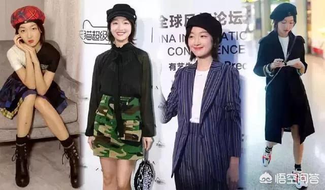 同一顶帽子。搭配不同的衣服就呈现不一样的风格。搭配粗呢外套复古俏皮。换上黑色风衣搭配粉色姥爷鞋甜美可爱。在贝雷帽的衬托下。本身就是巴掌脸的周冬雨显得脸更小了。
